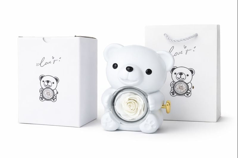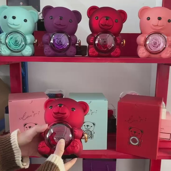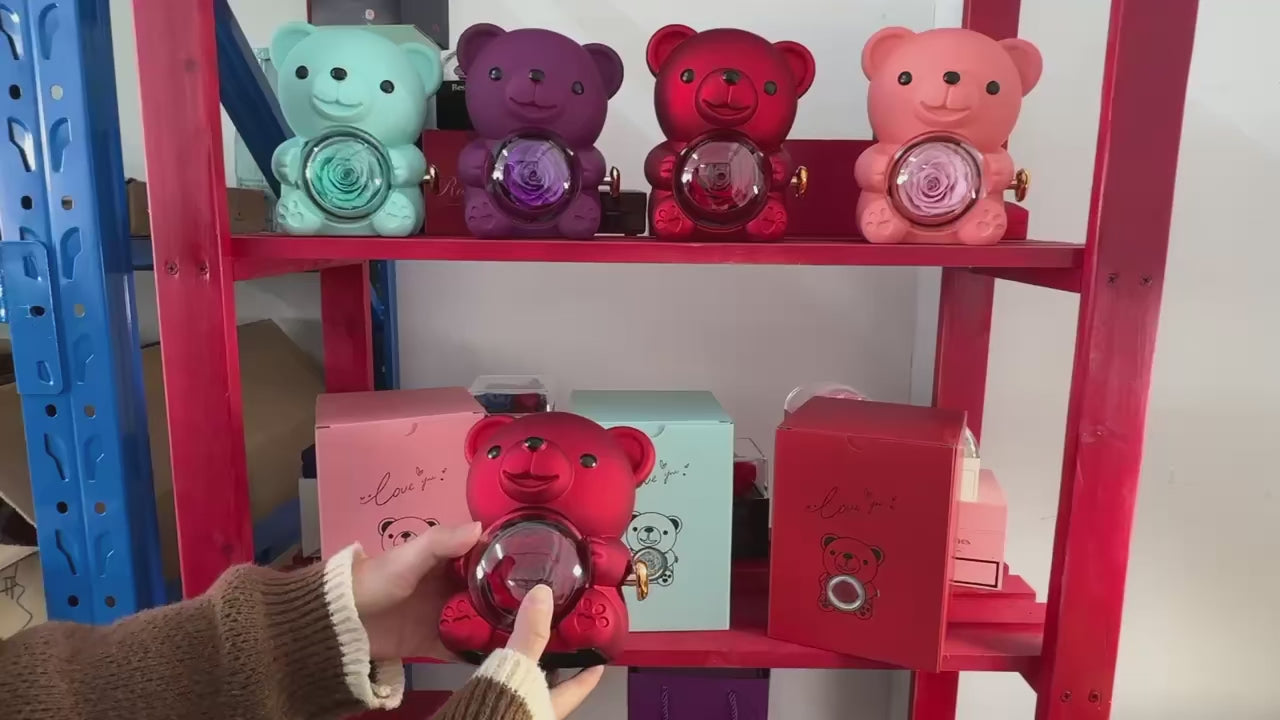🧸 Obrotowe Pudełko na Biżuterię z Misiem i Różą
