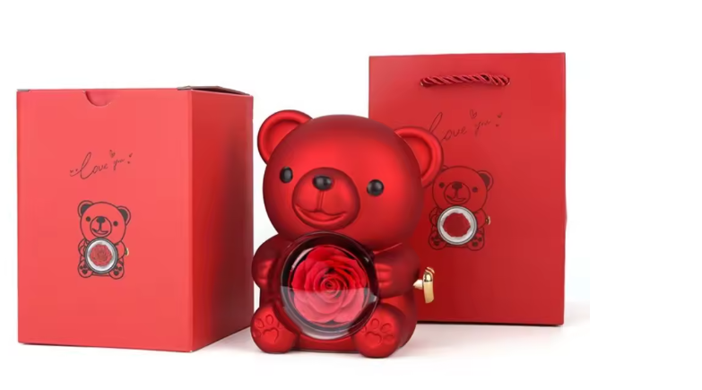 To urocze pudełko na biżuterię w kształcie misia z różą łączy design, funkcjonalność i emocje – idealne na Walentynki, rocznicę, urodziny lub po prostu „bez okazji”.